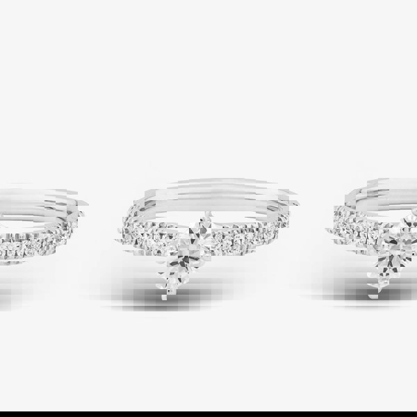This stunning 9ct white gold ring features a centre stone, a 0. 33ct brilliant-cut diamond solitaire in a graceful twist design, set in a classic four-claw setting. With H colour and SI2 clarity, the diamond sparkles beautifully, complemented by delicate shoulder-set diamonds for added brilliance. A total diamond carat weight of 0. 48ct. A timeless and elegant choice for any special occasion.