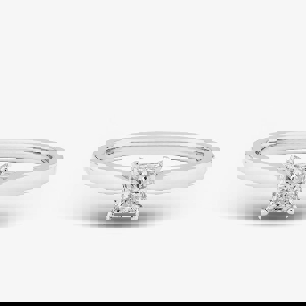 This stunning 9ct white gold ring features a 0. 50ct princess-cut diamond solitaire, elegantly set in a classic four-claw setting. With H colour and SI2 clarity, the diamond showcases exceptional brilliance, making it a timeless and sophisticated choice for any special occasion.