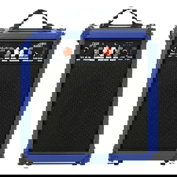 A portable and compact guitar practice amp. The classic layout with 2 band EQ and gain control enables you to find your tone with minimal effort. The 3rd Avenue amp also possesses a drive channel that can be toggled by the button on the amp, giving you a punchy overdrive sound. All cased in a slimline design in either blue or black, it is made to fit where space is limited. In addition, there is a 1/4" jack headphone input for when you need to keep the noise down.