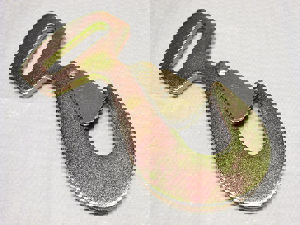 Designed for creating your own ratchet straps, this 50mm Flat Snap Hook is a secure hardware fitting that is sewn into webbing for a dependable hold. Finished in zinc plating for corrosion resistance, it is well suited to applications where a robust, hardwearing hook is required.