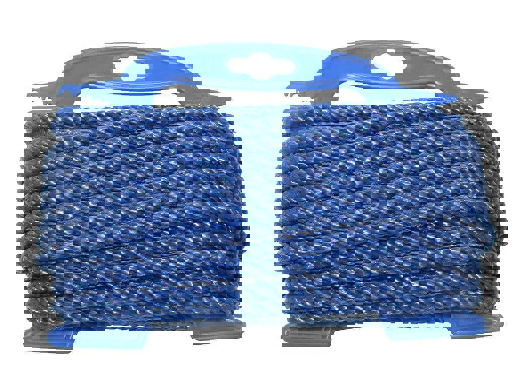 Our 8mm blue discount rope is rot proof, strong, hard wearing and is used for a general multi-purpose rope that can be used for DIY, fishing, at home, building, agriculture use, marine environments, tarpaulins and civil engineering.