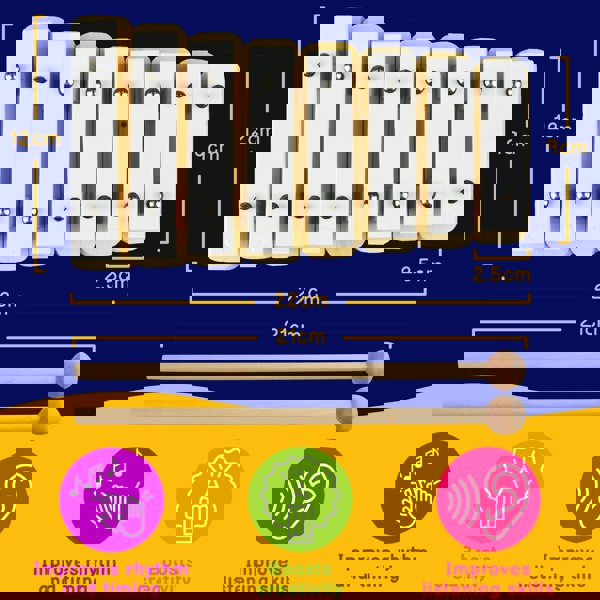 This Chime Bar Set includes 8 separate chime bars, made from a solid wooden base and white, pristine chimes. They create a bright tone and are great for use in the classroom to encourage learning. Labelled with the individual notes, this chime bar set is perfect for any student learning about scales and the basics of music. They can be used in a pack to create a diatonic scale, or separately in group activities. Supplied with eight wooden beaters, these chimes bars are a great addition to the classroom.