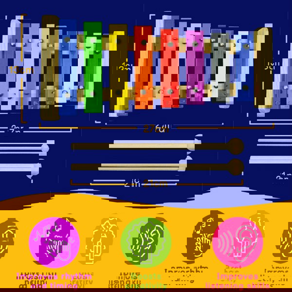 The glockenspiel is supplied with a pair of wooden beaters and is safe and suitable for children aged 3 and up.