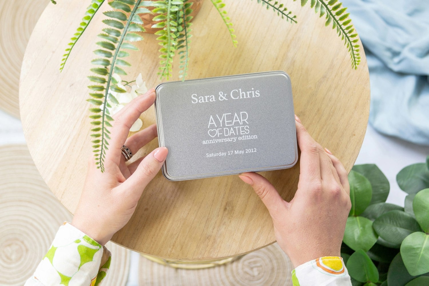 Tin wedding anniversary gift by A Year of Dates. The perfect wedding anniversary present for anyone who wants to keep the romance going all year, especially for those tin-niversary celebrations.
