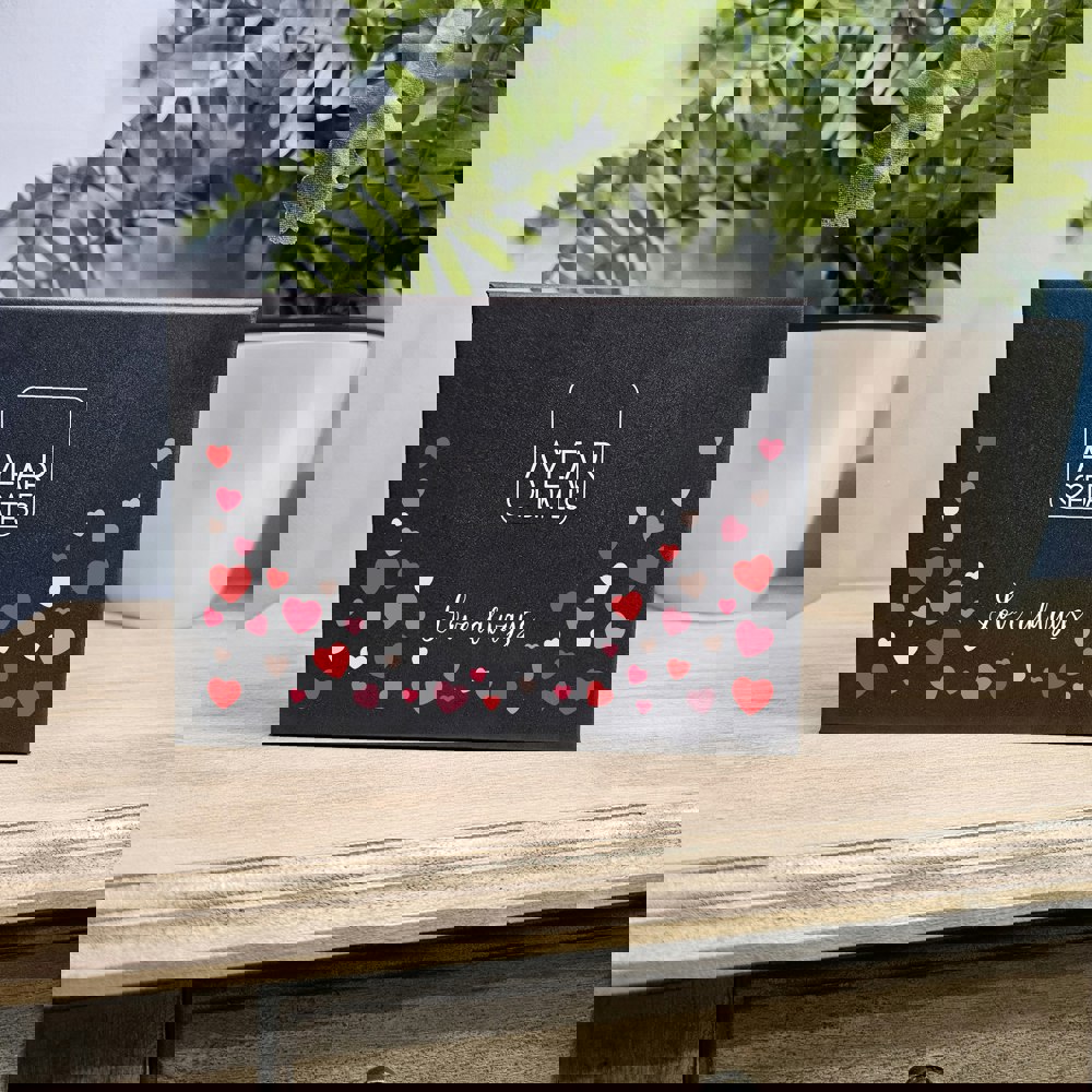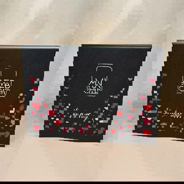 The set is presented in a black box with the wording “Love always”, surrounded by hearts in different shades of red.