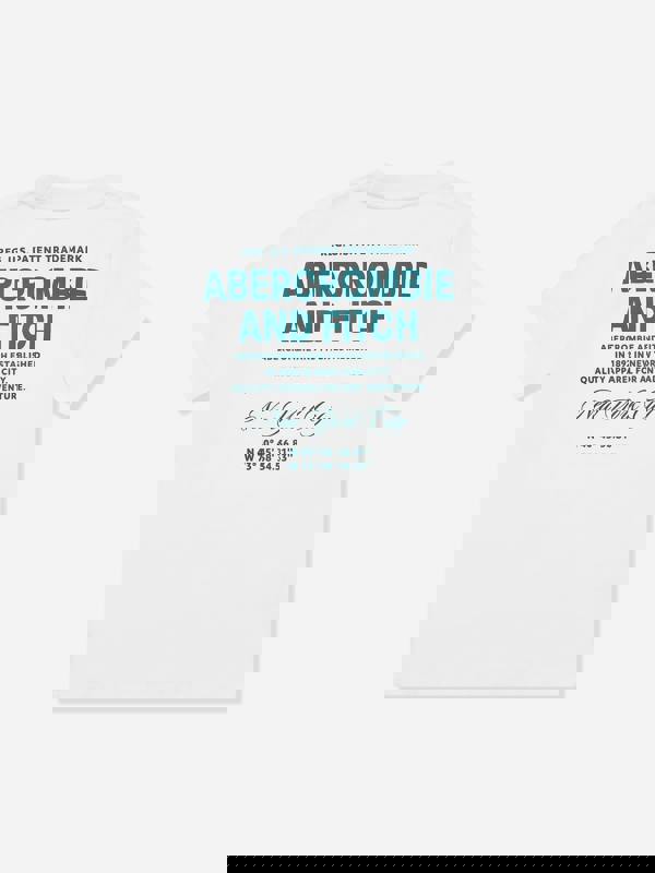 Abercrombie & Fitch presents timeless American design with this boys’ bright white T-shirt. Made in jersey, it has short sleeves and a ribbed collar for a clean, classic finish. Abercrombie graphics sit on both the front and back, adding a bold branded look while keeping the silhouette simple and easy to wear.
