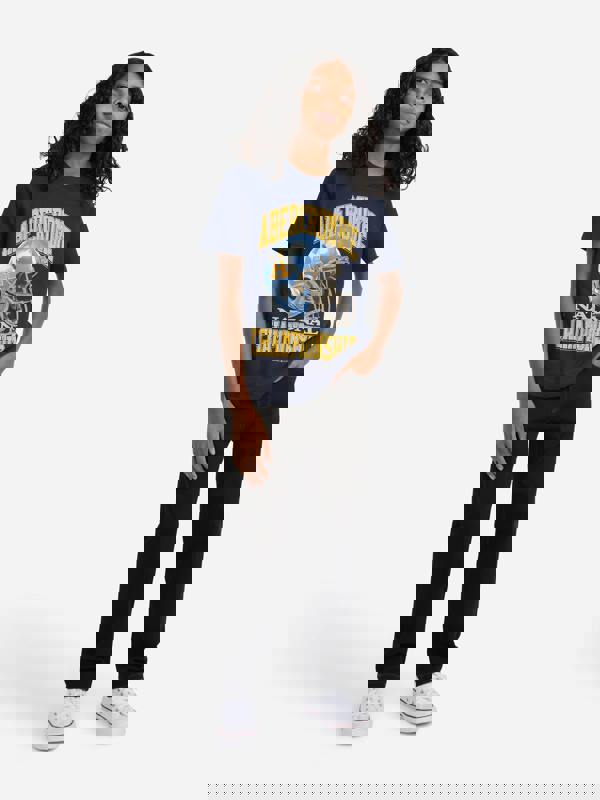 These boys’ jeans from Abercrombie & Fitch bring a timeless American look to everyday outfits. Cut in a straight fit, they include belt loops and a traditional five-pocket layout for a classic finish. Navy in colour, the design is detailed with golden hardware and golden threading, alongside a tan brand label on the back.