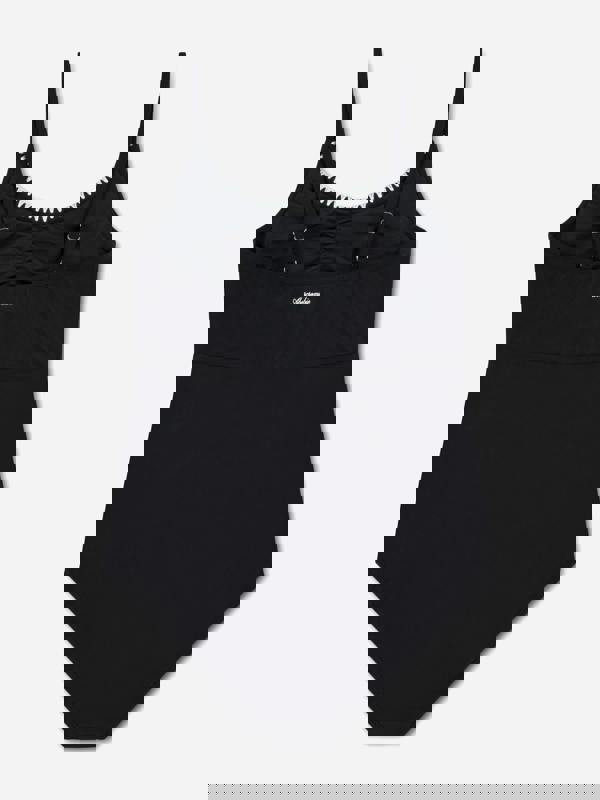 Abercrombie & Fitch brings powerful branding to timeless American style. This girls’ black swimsuit has a close fit with a smart front neckline and a decorative detailed edge along the neckline. Fine wrinkle detailing adds texture, while the cinched cutout shape creates a distinctive finish.