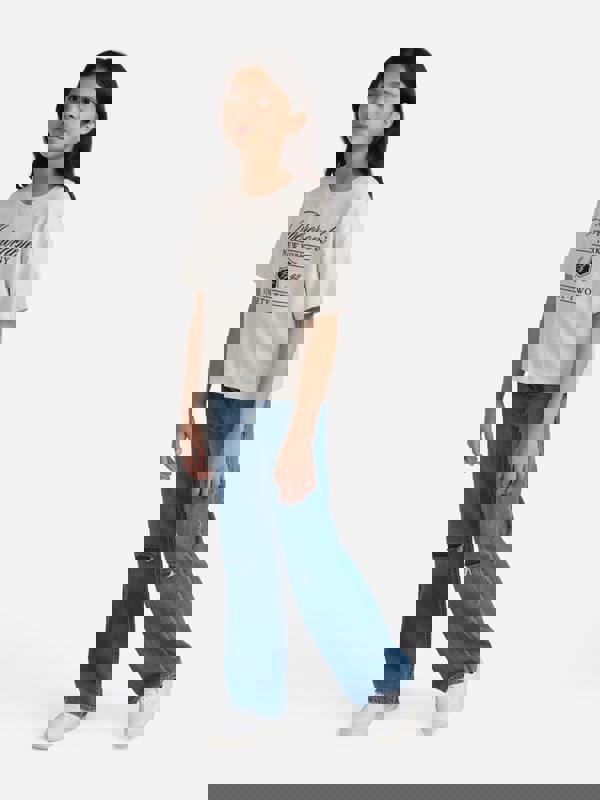 Abercrombie & Fitch draws on Ivy League archives to create everyday wear. This girls’ crest boxy T-shirt comes in an oatmeal heather beige tone, with a clean, casual shape for daily outfits.