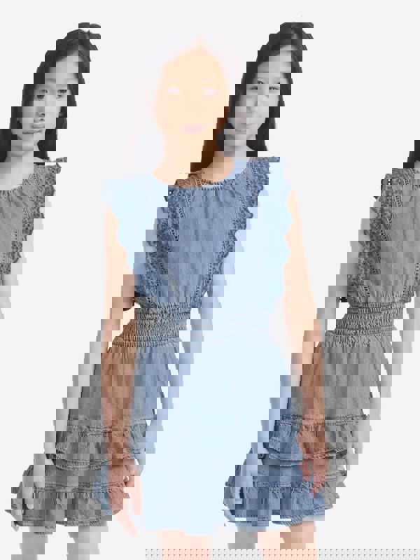 Abercrombie & Fitch brings timeless American design to this girls’ tiered dress in blue. The crinkle cotton voile material is paired with a crepe lining, creating a lightweight layered finish. A smocked waist adds definition, while eyelet details give the dress a distinctive look.