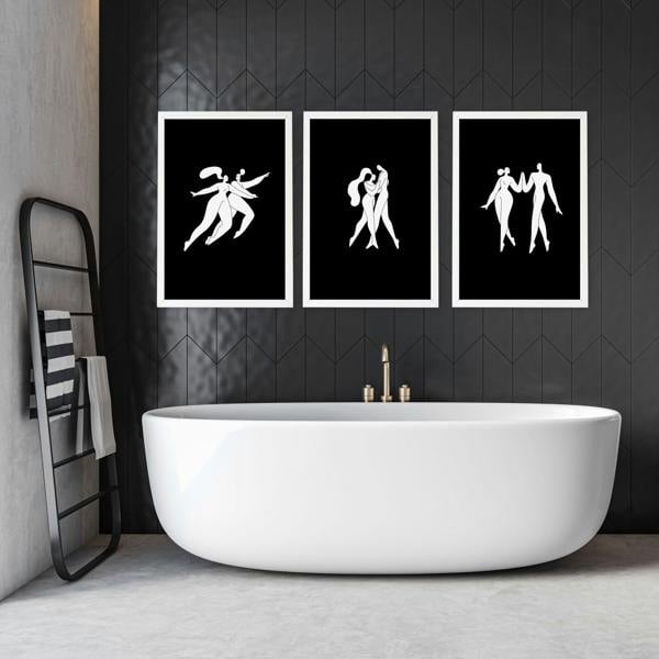 Transform your bathroom into a stylish sanctuary with our Bathroom Wall Hanging Art—a Set of 3 Boho Women Wall Art Prints that effortlessly elevates your bathroom decor for walls. These exquisite prints, coloured in a versatile white and black palette, blend seamlessly with any interior style.