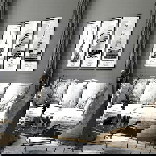 Immerse your space in the timeless allure of New York City with our set of three captivating black and white prints showcasing iconic Manhattan landmarks. Each print beautifully captures the city's dynamic energy and architectural marvels that never sleeps.