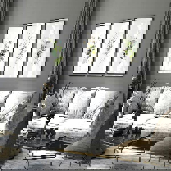 The Watercolour Botanicals art prints capture the delicate details of nature's beauty. Each print showcases intricate botanical elements, vividly painted in Sage Green and highlighted with luxurious Gold tones. This fusion of colours and meticulous craftsmanship creates a captivating visual focal point, transforming your living room into a haven of natural charm.
