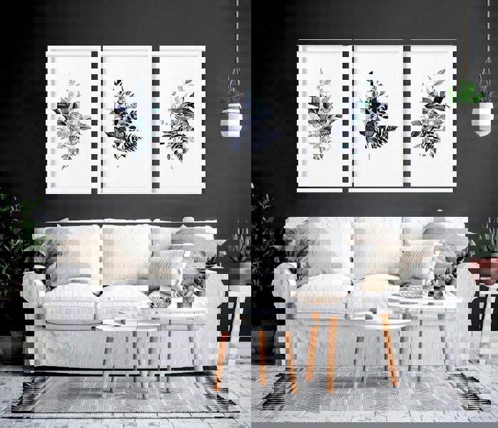 Crafted with high-quality paper and ink, our Blue botanical wall art is durable and visually striking. The intricate designs and rich colour palette create a unique and eye-catching focal point that is sure to impress.
