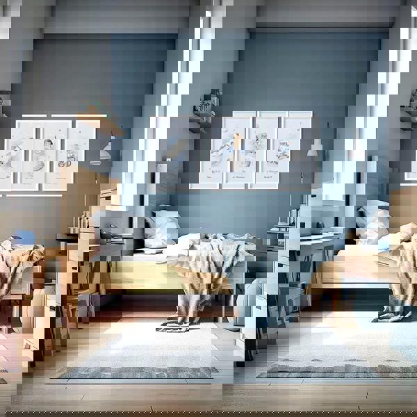 Transform your child's nursery with our beautiful Childrens Prints For Bedroom. This Set of 3 wall art prints adds a soothing yet playful touch to any space. Imagine your little one's room enlivened by the calming Blues colour palette and whimsical Cosmos style.