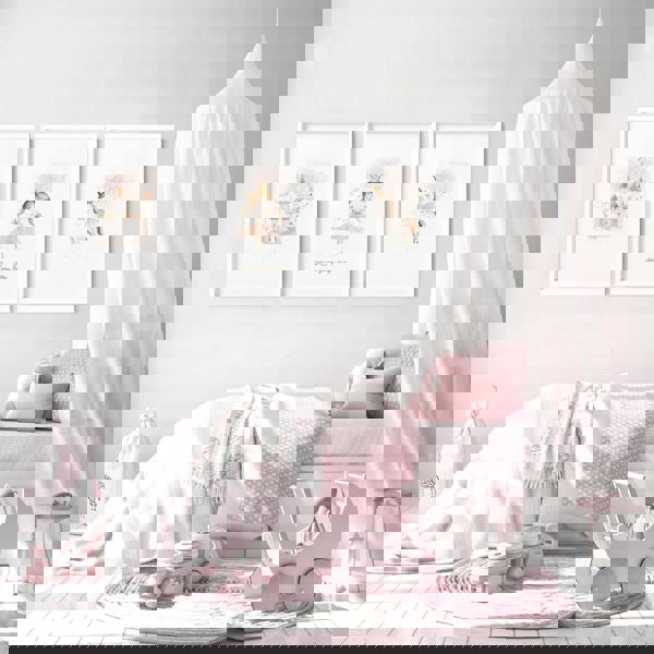 Imagine the walls of your girl's nursery elegantly decorated with these eye-catching prints. See the cute illustrations transform plain walls into a vibrant and playful space. Amidst nap times and bedtime stories, these wall decor pieces will become an integral part of your child's magical world.