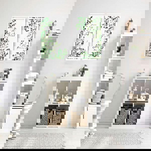 Each print displays a vibrant arrangement of Eucalyptus leaves in calming shades of green, creating a natural and inviting ambience. The watercolour technique adds a subtle artistic touch, enhancing the overall aesthetic appeal of your bathroom.