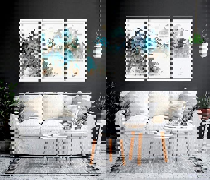 Finally, embrace the zen simplicity of Japanese-style decor with our set of three wall art prints. Let the ethereal sunrise landscapes transport you to a place of calm and serenity while the teal and beige hues create a harmonious backdrop for your living space.