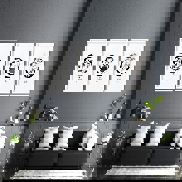 Explore this Black-and-White Gallery Wall combined with a refined Japanese style. Indeed bringing balance and harmony into your living room decor. Picture these artworks gracing your walls, inviting a harmonious ambience that soothes the soul and captures the eye of every guest.