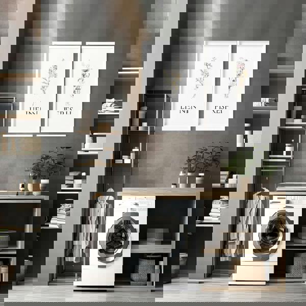 Picture yourself stepping into a serene space where each print tells a story of rustic French elegance meeting modern tranquility. The subtle yet captivating pastels certainly enhance the room's aesthetic, transforming your laundry room into a space you love.