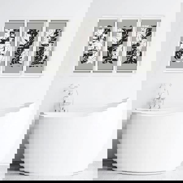 The delicate greyscale colour palette enhances your bathroom decor by introducing a subtle, calming aesthetic. Each print captures the beauty of botanical style, inviting you to immerse yourself in the tranquil essence of nature every time you step into your bathroom. No need to waste time searching for the ideal frames.