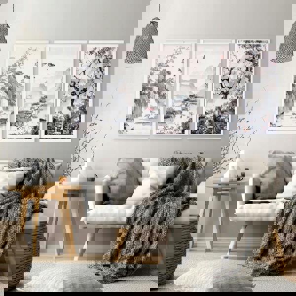 Imagine the delicate dance of cherry blossoms and mythical creatures gracing your walls, painting a picture of serene refinement. The vibrant pink palette not only enlivens your space but also enhances the calm and playful elements of your living room art decor. These prints are your canvas to inject personality and charm into your home.