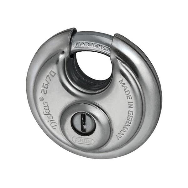 From ABUS, the 26 Series Diskus Padlock is a key-operated security padlock designed for demanding, high-risk environments. Made in Germany and built with a heavy-duty stainless steel body, it’s a considered choice for securing valuables and goods where theft risk is high, from warehouses and factory gates to containers and lorries.