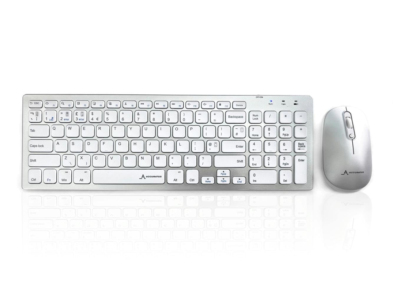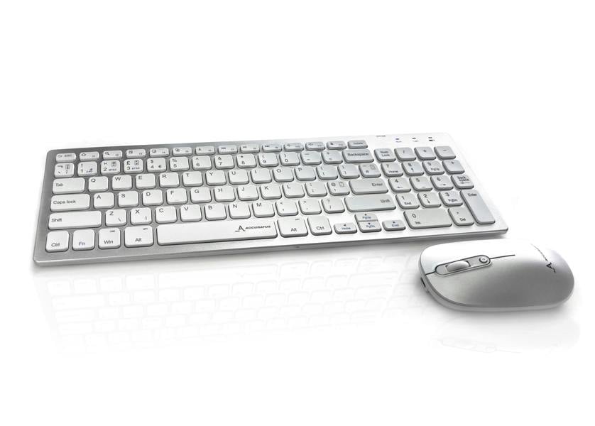 Switching between devices is straightforward with the Accuratus 8400 keyboard and mouse set, combining Bluetooth 5.0 and RF 2.4GHz wireless connectivity in a full-size format. Multi-device pairing supports 2 Bluetooth devices and 1 RF device, with dedicated pairing buttons for quick hot swapping between a PC, Mac, tablet or phone. A combined Windows and Mac UK English key layout keeps everyday typing familiar across platforms.