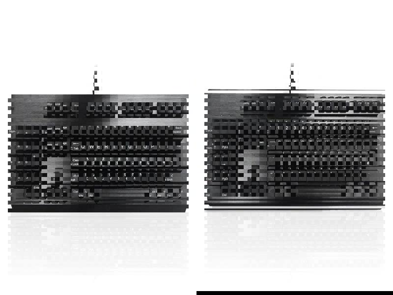 Programming is handled directly on the keyboard, with no computer software required. Macros can be created, existing key programming can be changed, and a second programmable layer is available via the FN key. Settings can be updated as needed using the in-built re-writable EEPROM. Integrated multimedia functions, clear key legends and status LEDs for Caps, Num and Scroll Lock complete the everyday essentials.