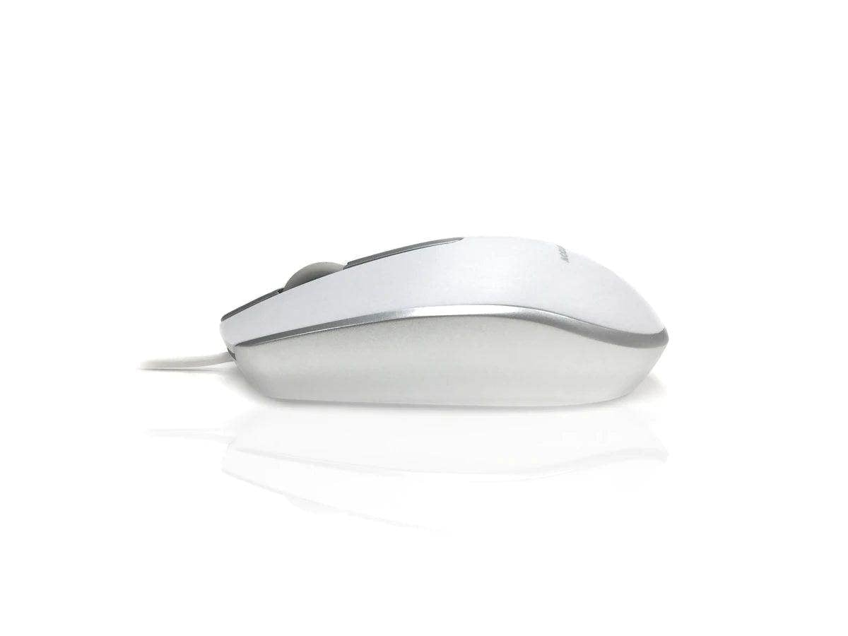 Finished in silver and matt white, the tactile case is colour matched to the Accuratus 301 Mac wired keyboard (PN: KYBAC301-USBCMAC). A full-size contoured shape supports comfortable handling, while the ambidextrous layout suits right- or left-handed use. High resolution optical tracking technology with 800dpi is paired with tactile left and right buttons and an integrated scroll wheel with click for page navigation. Easy-glide feet complete the design, and the mouse is supplied in white, environment friendly packaging with ocean friendly internal packaging, with no plastic bags and the product wrapped in recycled paper.