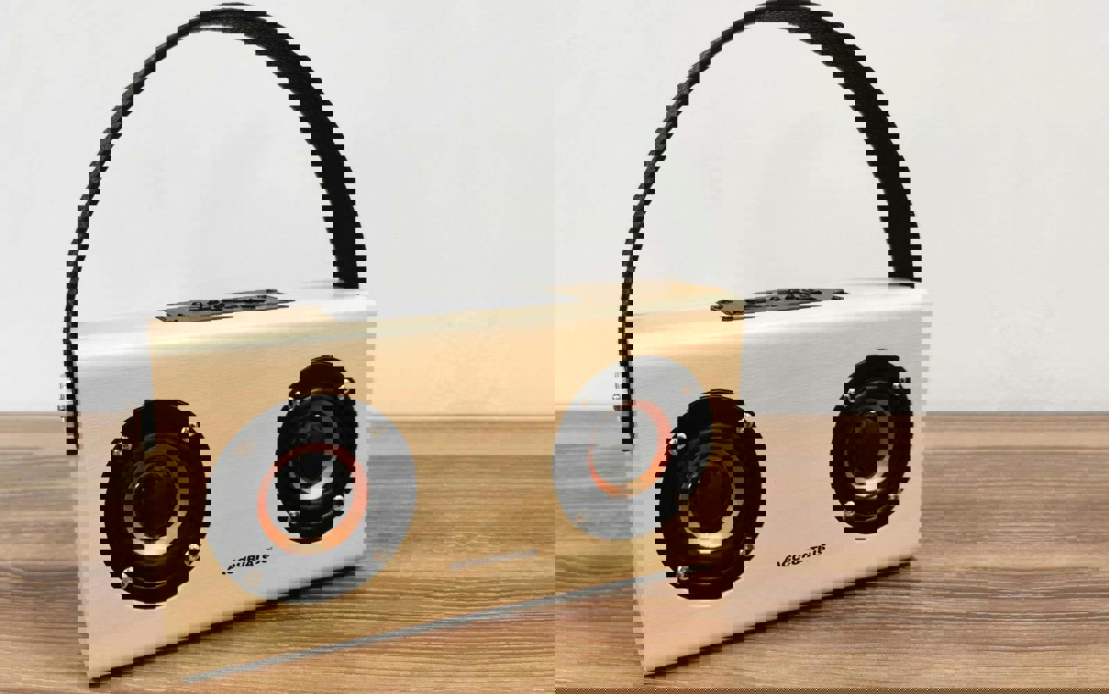 A portable speaker set with a Scandinavian-inspired finish, the Accuratus Scandi W100 combines Bluetooth and wired listening in a compact, rechargeable design. Accuratus pairs a light woodgrain housing with exposed speakers and a faux leather carry handle, making it easy to move between rooms or take with you.