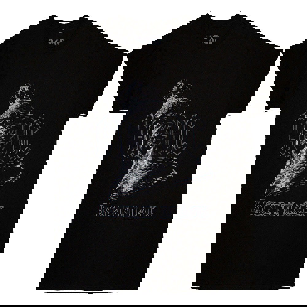 Official licensed AC/DC Unisex T-Shirt featuring the 'Back In Black Bell' design motif. High quality black unisex t-shirt featuring front printing. Comes in a wide range of sizes from Small through XX-Large, subject to availability.
