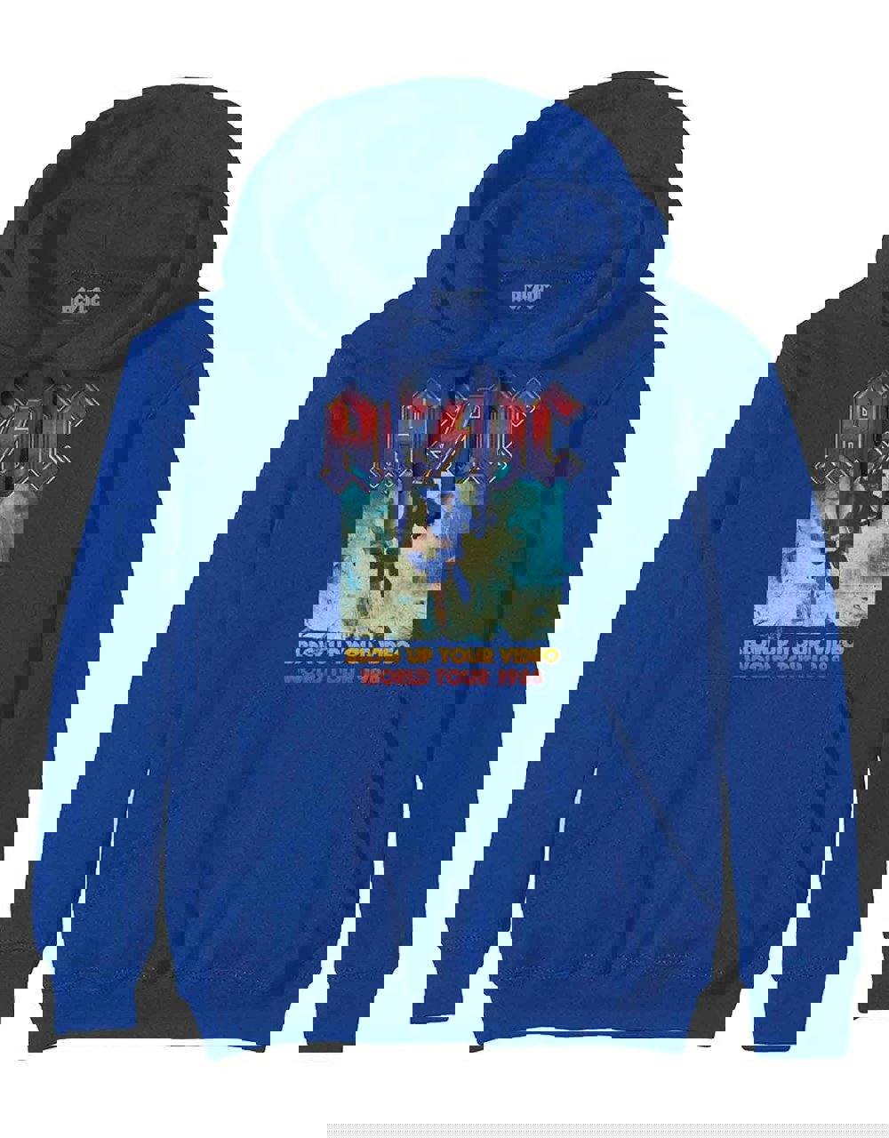 An official licensed cotton Pullover Hoodie featuring the AC/DC 'Blow Up Your Video' design motif. This high quality garment is available in a blue colourway. Classic fit cotton pullover hoodie featuring pouch pockets. Comes in a wide range of sizes from X-Small through XX-Large, subject to availability.