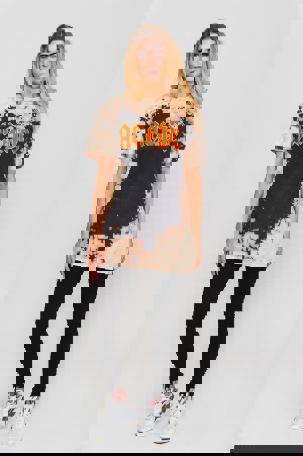 An official licensed AC/DC tee featuring the 'Logo' design motif. This high quality t-shirt is available in a dip dye tan and black colourway. Dip-Dye Tan & Black Tee with short sleeves & crew neck, made from 100% cotton. Comes in a wide range of sizes from Small through X-Large, subject to availability. Please note that due to the print process design may vary from image