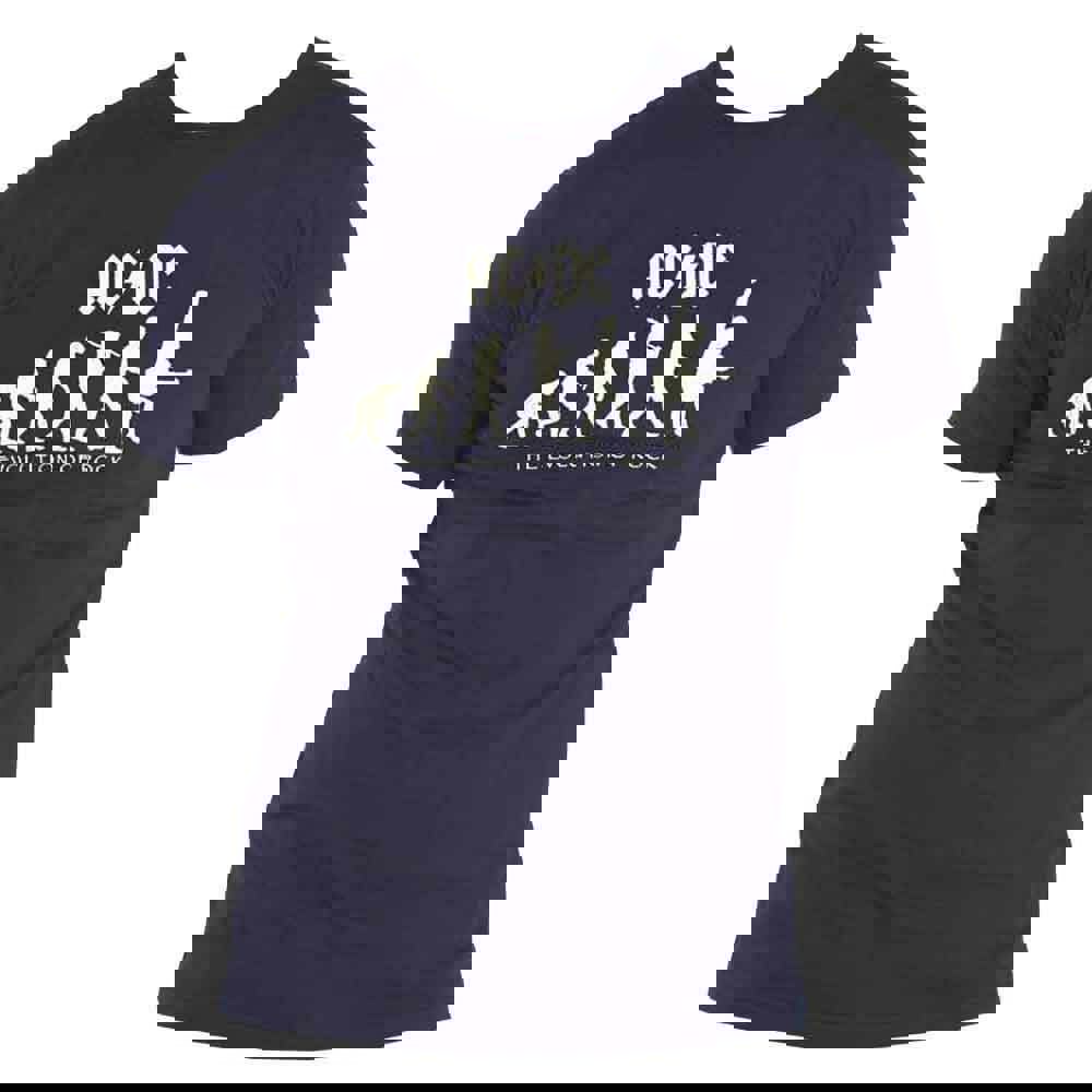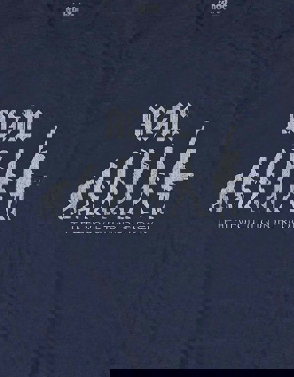 An official licensed Unisex AC/DC Tee featuring the 'Evolution of Rock' design motif. This high quality Tee is available in a navy blue colourway. Comes in a wide range of sizes from Small through XX-Large, subject to availability.