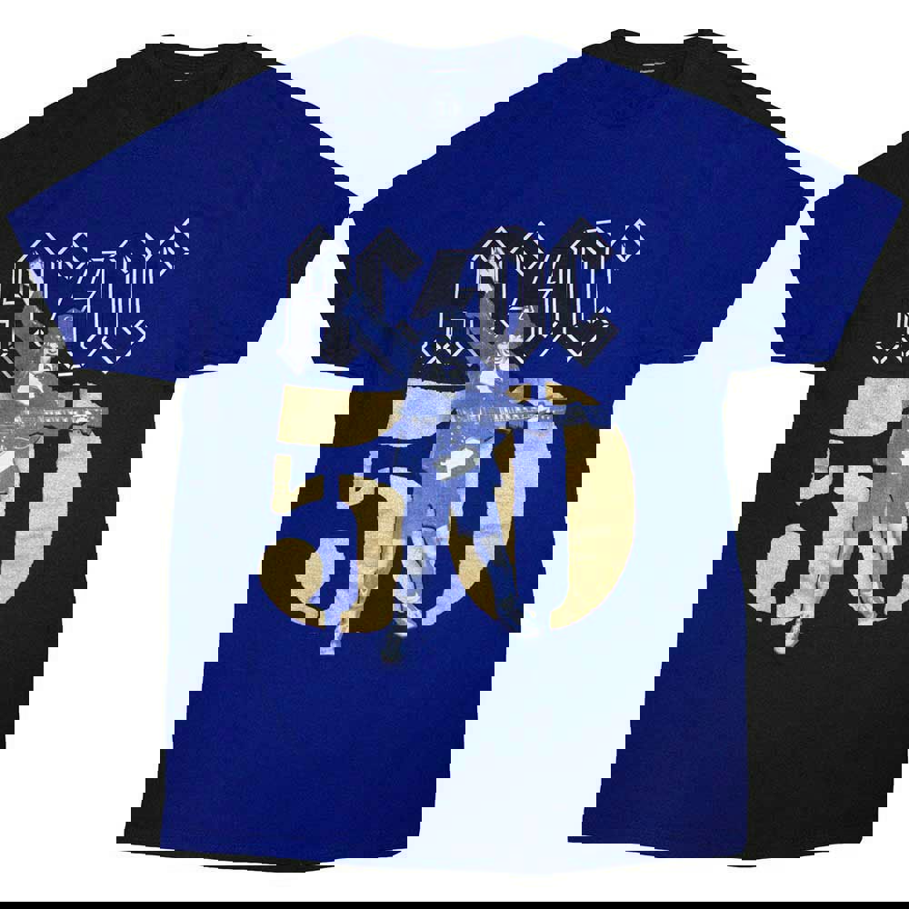 Official licensed AC/DC Unisex T-Shirt featuring the 'Gold Fifty' design motif. High quality T-Shirt available in a blue colourway. High quality soft-style cotton unisex t-shirt featuring front printing. Comes in a wide range of sizes from Small through XX-Large, subject to availability.