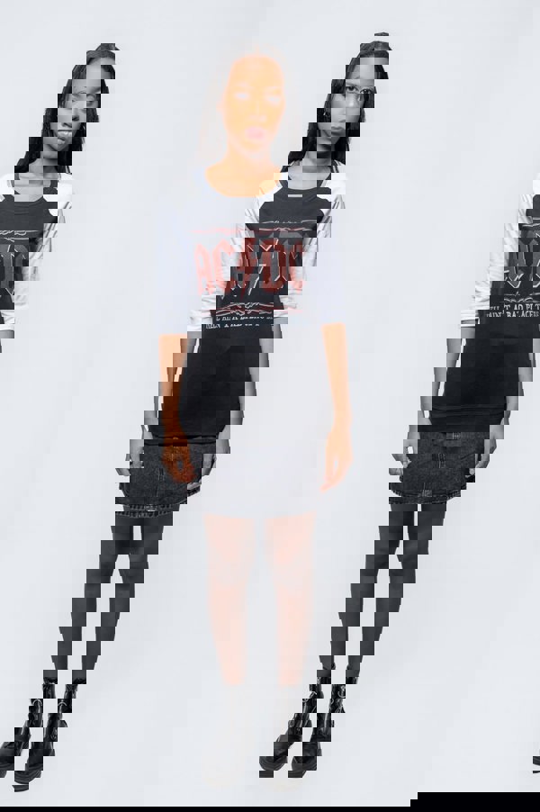 An official licensed AC/DC Super Skinny/Junior Fit Style Raglan Tee featuring the 'Hell Ain't A Bad Place' design motif. This high quality Skinny Fit Raglan Tee is available in a black & white colourway. Comes in a wide range of sizes from X-Small through XXXX-Large, subject to availability. Please note these are Super Skinny Womens Cut t Shirts