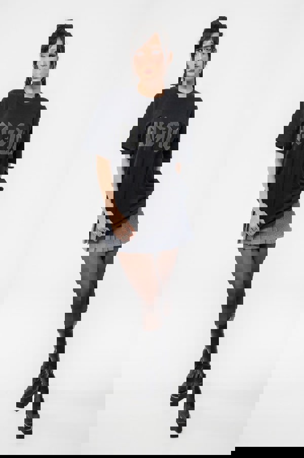 An official licensed AC/DC Unisex T-Shirt featuring the 'Logo' design motif. This high quality T-Shirt is available in a black colourway. High build printing adds height to areas of the design. It is very effective, adding depth to the logo application. Comes in a wide range of sizes from Small through XX-Large, subject to availability.