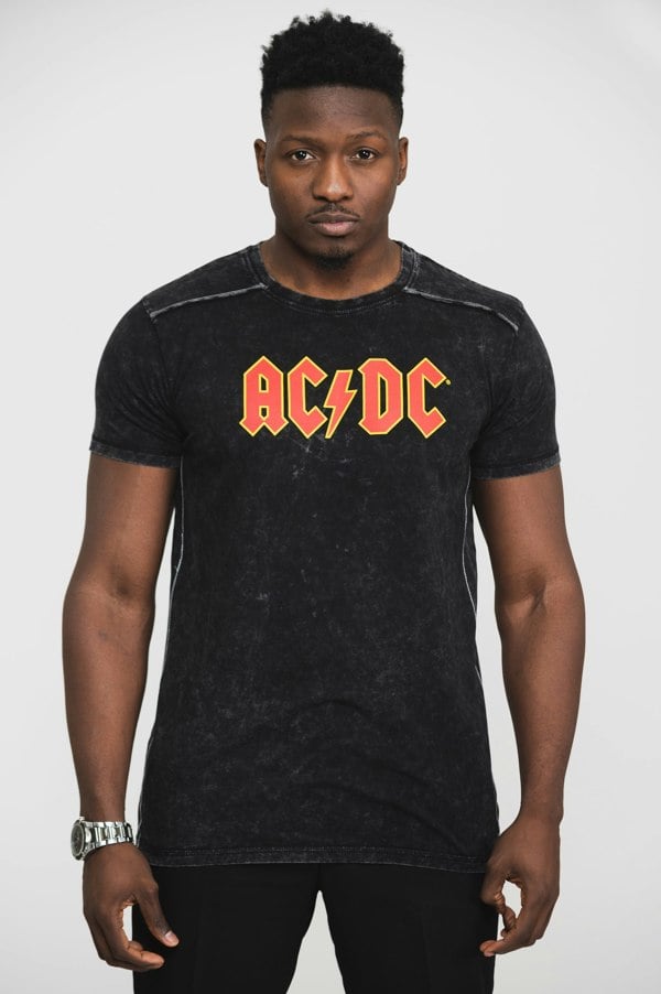 AC/DC Band Logo Snow Wash T Shirt