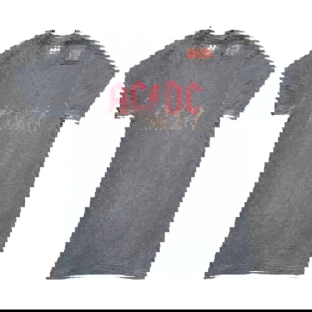 An official licensed AC/DC Unisex T-Shirt featuring the 'Vintage Silhouettes' design motif. This high quality T-Shirt is available in a charcoal grey colourway. Classic soft-style cotton unisex fit tee with front printing, short sleeves and crew neck. Features snow wash finish to front and back of the tee. The Wash Collection 2022 features a range of unique tees made from 100% cotton and feature a range of finishes including Dip Dye, Tie-Dye & Snow Wash. Comes in a wide range of sizes from Small through XX-Large, subject to availability.