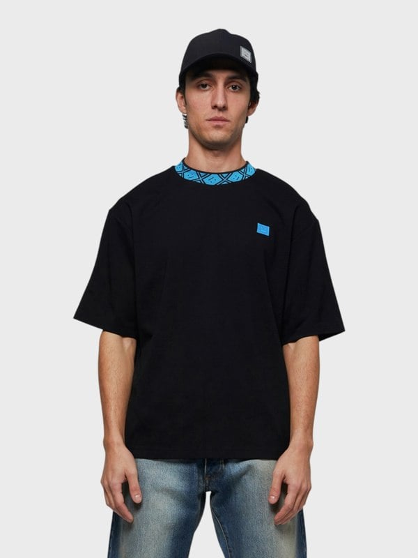 Acne Studios' iconic collar logo t-shirt merges minimalist Scandinavian design with contemporary streetwear sensibility.