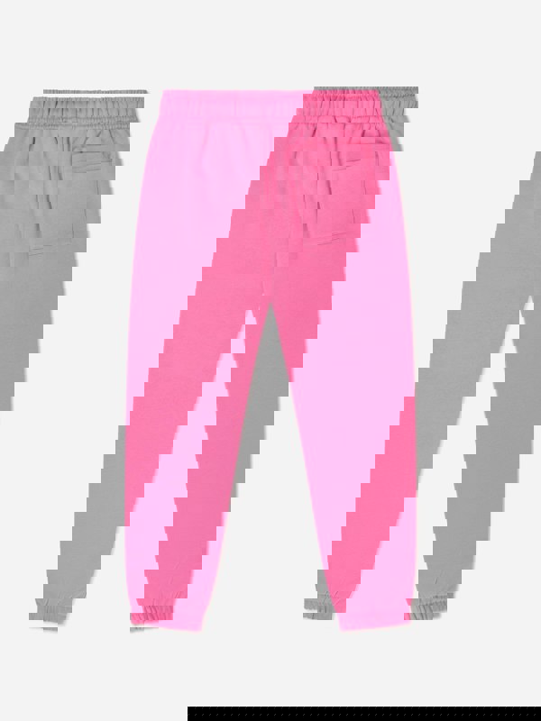 Acne Studios kids joggers in pale bright pink with a minimalist finish. Made from midweight organic cotton, this pair has a relaxed fit and a drawstring-tie waist for an adjustable feel. A tonal face emblem is embroidered on the left leg, keeping the branding subtle and consistent with the clean design.