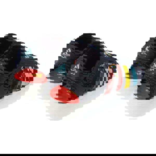 These adidas baby closed toe sandals come in an Inkwell colourway with a multi-tone rainbow design. The low-cut shape and closed toe style create a neat, covered look, while a touch fastening strap secures the fit. A flat profile is paired with a cushioned midsole for added comfort underfoot.
