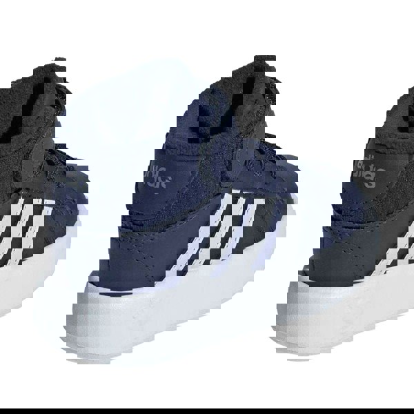 These adidas Baby Grand Court trainers come in a mid cut shape with a flat sole and a round toe. The upper combines synthetic and textile materials, paired with a textile lining and a synthetic outsole. A plain base is finished with a contrast stripe for a clean, sporty look.