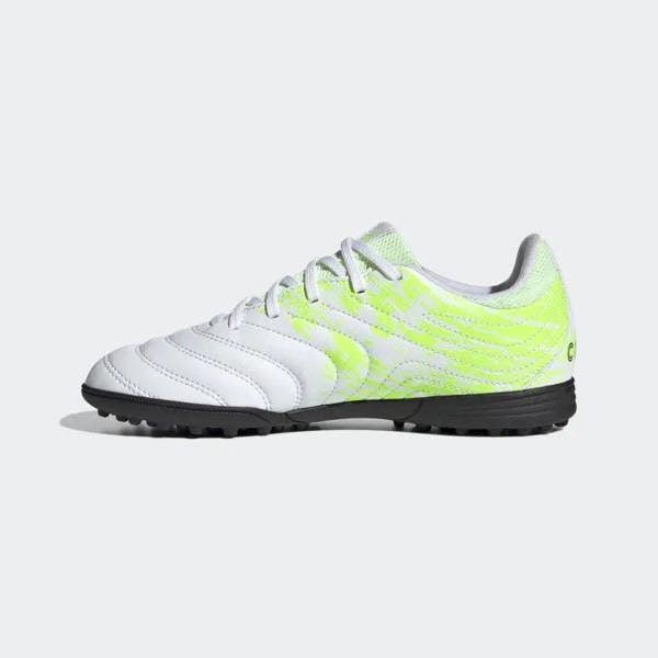 Play harder, win bigger. Always demand more. Your touch. Your team. In these juniors' football boots you'll transform them both. Their soft forefoot has stitching to help the ball stick. The flexible mesh quarter and integrated mono-tongue lock you in, while foam keeps you comfortable. Step it up in adidas Copa 20. 3 Turf Boots.