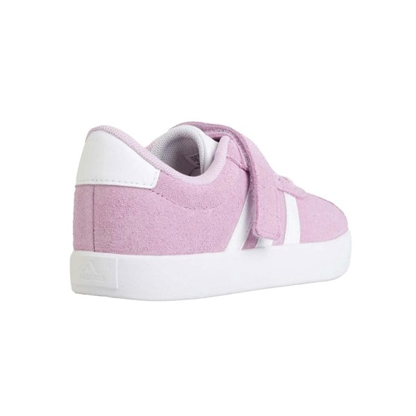 These adidas childrens/kids 3.0 suede court shoes come in purple and white with a low-cut profile and a round toe. The upper is made from suede, paired with a textile lining and a vulcanised rubber outsole. A padded tongue adds structure, while the flat sole keeps the silhouette classic. Branding details include a logo and a side stripe.