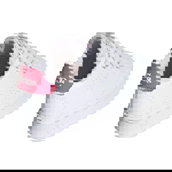 These adidas childrens Advantage trainers come in white and pink with contrast detail and logo branding. The perforated synthetic leather upper is paired with a textile lining and a rubber outsole. A flat profile and regular fit keep the shape clean and simple.