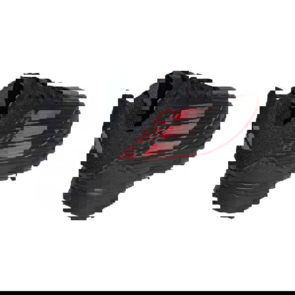 These adidas childrens/kids F50 League football boots come in black with contrast detail and a round toe. The upper is made from Fiberskin, paired with an EVA (Ethyl Vinyl Acetate) midsole and a rubber outsole. A lace-up fastening keeps the fit secure, while the flat profile maintains a low, even feel underfoot.