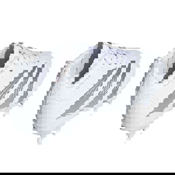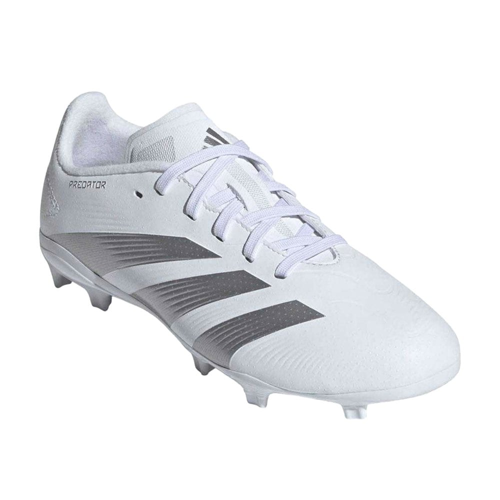 These adidas children’s Predator League firm ground football boots come in white with a low-cut profile and a round toe. The upper has a 3D hybrid construction with Strikescale texturing, finished with printed, striped and logo detailing. A lace-up fastening runs through six eyelets for a secure closure.