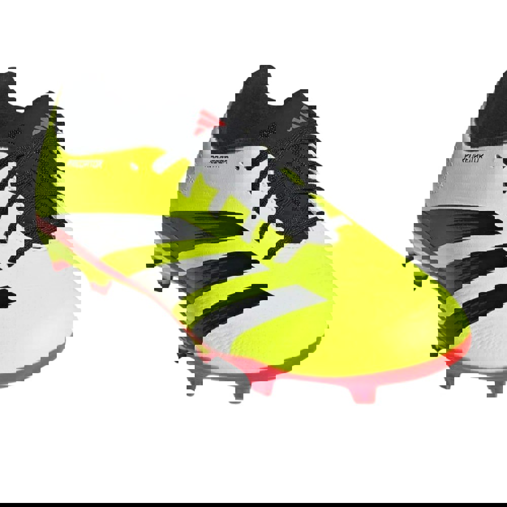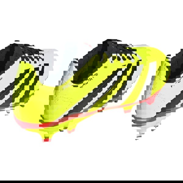These adidas children’s Predator League firm ground football boots come in yellow and black with a striped design and stud detailing. The upper uses a synthetic, textured construction with 3D hybrid Strikescale elements, paired with a textile lining for an enclosed feel.